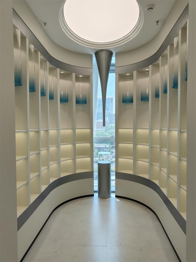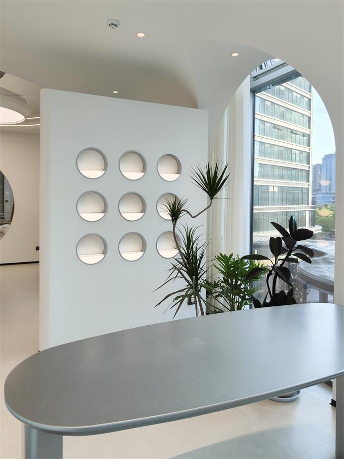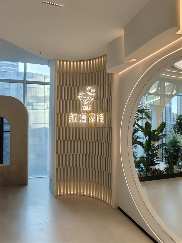 白色弧形隔断配九宫格圆龛,绿植与金属桌碰撞,拱形窗框都市景,开启艺术感美肤体验序章。 弧形格栅暖光衬托发光品牌标识,圆形镜面延伸空间,艺术化传递品牌柔美专业属性。 木质背景配黑色画框,专利证书阵列成墙,直观展现品牌科研实力与专业可信度。 蓝白洽谈区弧形吊顶柔光,落地窗引自然光与城景,营造信任松弛的沟通氛围。 对称弧形陈列架如双翼,渐变蓝玻璃柱点缀,圆形灯幕与金属锥打造艺术化产品殿堂。 |